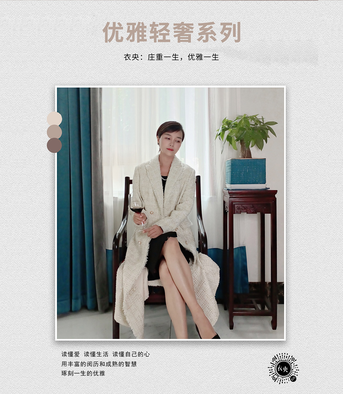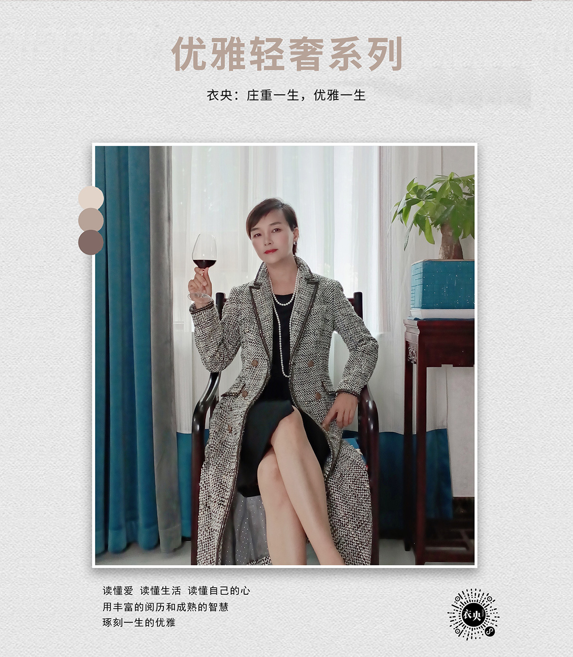 【衣央】時尚輕奢中淑氣質水波紋羊毛大衣