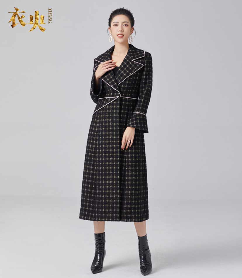 【衣央】鉆鏈時尚復古格子小香風大衣